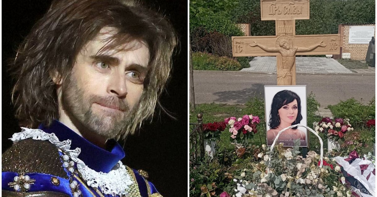 Муж покойной актрисы Петр Чернышев появился на кладбище с двумя большими букетами красных и белых роз. Фигурист поставил их на могилу, после чего перекрестился и поцеловал деревянный крест на погосте. Спортсмен помог шестилетней дочери Миле поставить цветы на могилу мамы.