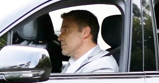 Артиста заметили за рулем черного седана. Бывший избранник исполнительницы главной роли в фильме «Госпожа горничная» ехал в свой офис в Вест-Голливуде. Бен выбрал белую рубашку с воротником под светло-серый костюм.