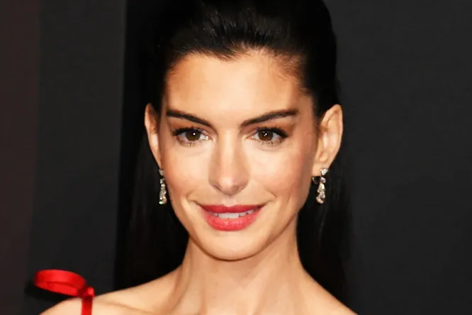 Стилист артистки Эрин Уолш подобрала для нее ярко-красное платье Valentino. Ради наряда с открытой спиной Энн отказалась от бра. Корсетный лиф перешел в многослойную юбку в пол, а длинные завязки на тонких бретельках играли роль своеобразного шлейфа. Аутфит завершили остроносые лодочки на шпильках. Из украшений звезда выбрала гарнитур из белого золота с бриллиантами – серьги-капли, массивный браслет и несколько колец.