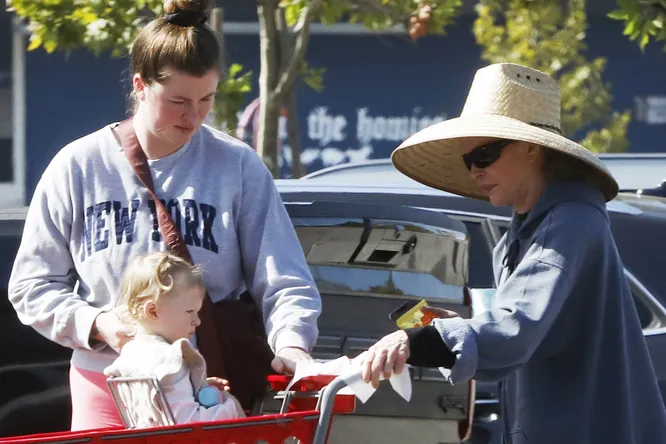 Три поколения женщин сняли папарацци на парковке у магазина в Лос-Анджелесе в солнечный день. Дочь Ким Бейсингер и Алека Болдуина выбрала повседневный образ – серый джемпер с надписью New York она сочетала с розовыми шортами и серыми кроссовками. Аутфит завершила коричневая сумка из замши через плечо. Айрленд отказалась от макияжа и собрала волосы в небрежный пучок. Она держала на руках дочь Холланд, которая была одета в светлую кофточку и коричневые брюки.