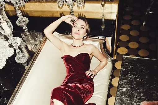 Еще одной гостье вечера, поставившей на черное, стала Глюкоза. Певица остановила свой выбор на элегантном бархатном платье бюстье. Наталья дополнила наряд рубиновым колье и помадой в тон драгоценным камням.