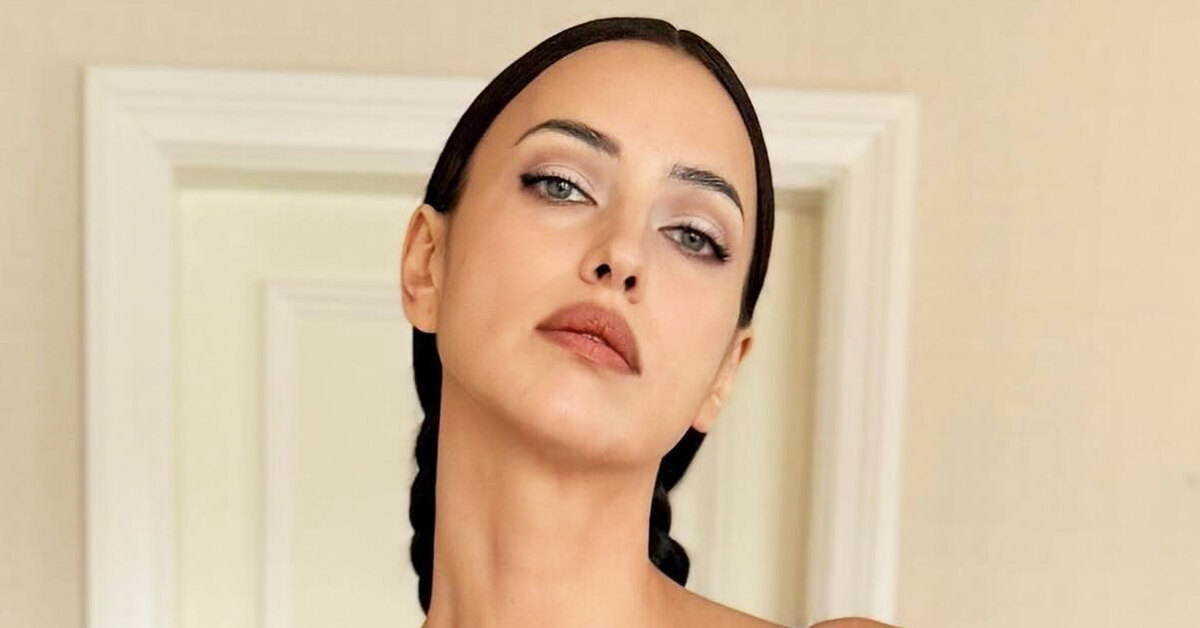 На другом фото Шейк позировала среди живописных скал в черном купальнике, скрепленном на лифе золочеными кольцами. Она продемонстрировала подкаченную фигуру. В отличие от анорексичных моделей, Ирина выступает за здоровое женское тело.
