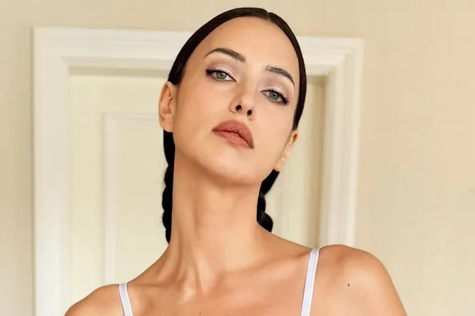 На одном из фото топ-модель позировала в прозрачном платье в пол нежного персикового цвета со шлейфом и цветочным декором. В таком виде актриса фильма «Геракл» напомнила свою героиню в блокбастере Мегару. Ирине сделали неброский макияж, подчеркнувший ее природную красоту, и собрали волосы в простой хвост.