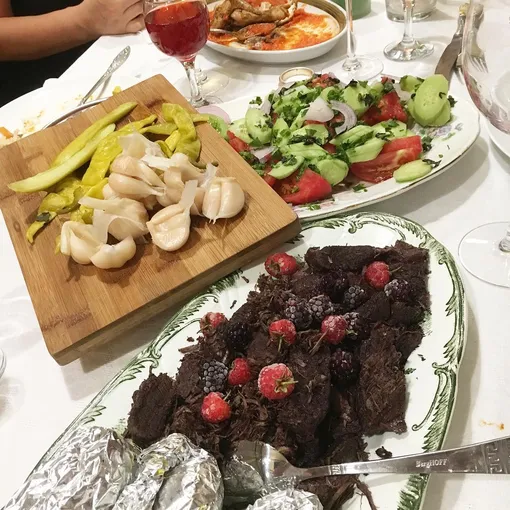Похвасталась телеведущая и кулинарными способностями подруги: «Авторское блюдо моей подруги Эсмы Кунчулии: телятина томленая в Саперави с ягодами. Нечто....».