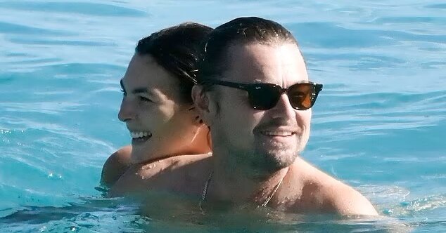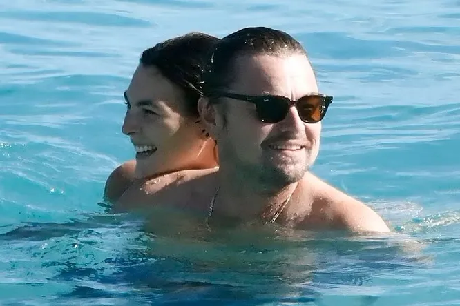 Леонардо предпочел лаконичные черные плавки. Он дополнил аутфит массивной золотой цепью и классическими солнцезащитными очками Ray-Ban. ДиКаприо трогательно поддерживал Витторию в воде, не переставая ее с нежностью обнимать.
