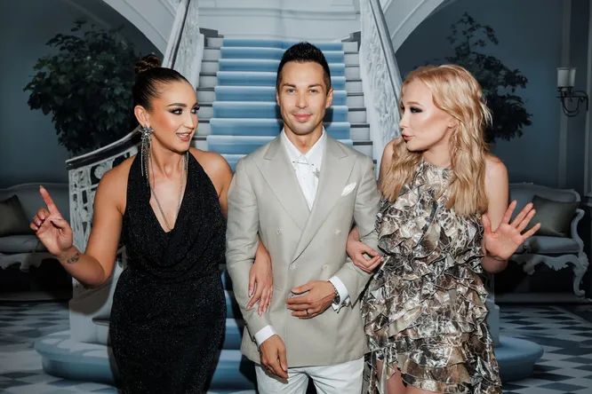 Встречала гостей, ни много-ни мало, сама Ольга Бузова, интервьюировавшая пришедших поздравить именинников. Ольга вместе с Николаем Басковым стали ведущими вечера.