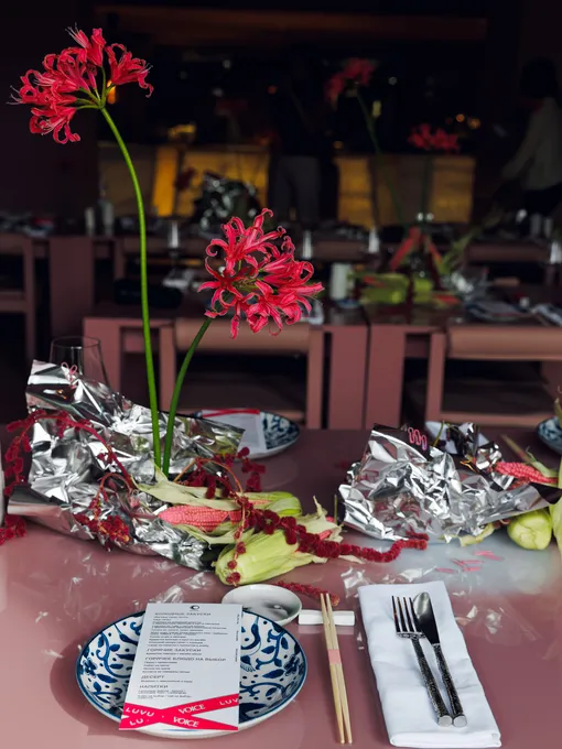 Мероприятие проходило в ресторане японской кухни Fullmoon от Ильи Тютенкова. Сырники из домашней рикотты с земляничным вареньем и матча сметаной, татаки из лосося с хумусом и эдамаме, креветки темпура с васаби айоли, японский цезарь-салат с курицей, гедза с креветками, монблан с земляникой и юдзу — бранч подарил гостям яркие гастрономические впечатления.
