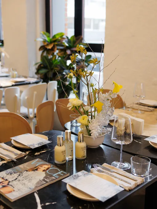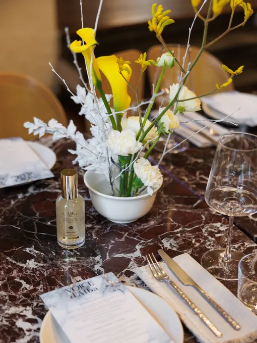 Мероприятие открыл PR-директор VOICE Никита Мартынов, который поприветствовал гостей, поделился историей о том, как создавался новый номер журнала, а также отметил важность таких теплых встреч и передал слово управляющему директору ресторана Sapiens Маргарите Мазиной и директору бьюти-отдела агентства WhyBConsult, представляющего интересы бренда d’Alba в России, Марии Каушан. Маргарита рассказала о концепции ресторана и блюдах, которые представлены в меню бранча. Мария представила гостям основную концепцию бренда d’Alba, который использует запатентованный комплекс TrufferolTM — идеальное соотношение экстракта белого трюфеля и витамина Е, обеспечивающий антиоксидантную защиту, повышающий эластичность кожи и предотвращающий появление признаков старения, и познакомила их с продуктами бренда, которые особенно актуальны на холодный сезон. Среди них — многофункциональной спрей-сывороткой White Truffle First Spray Serum, спрей-сывороткой для тела White Truffle Aromatic Body Mist Serum, двухэтапный крем для лица White Truffle Double Serum & Cream, питательная маска для лица White Truffle Nourishing Treatment Mask, а также продукты из витаминной линейки — витаминный лосьон White Truffle Moisturizing Serum Lotion и сыворотка для лица с витаминными капсулами White Truffle First Oil Capsule Serum.