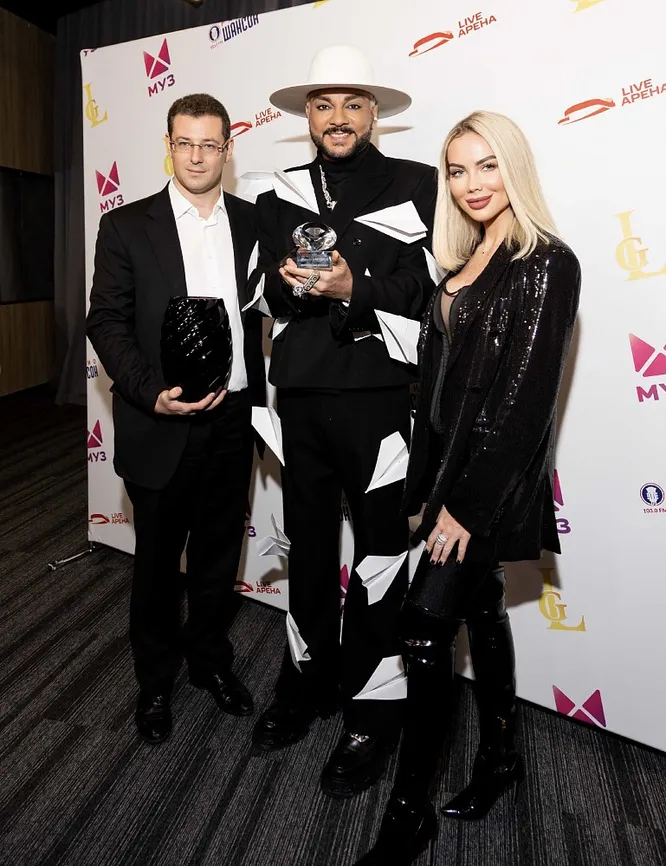 Владелец телеканала Fashion TV Антон Гормах и генеральный продюсер Мария Ост на концертной площадке LIVE Арена вручили Премию в номинации «Король шоу-бизнеса» Филиппу КИРКОРОВУ.