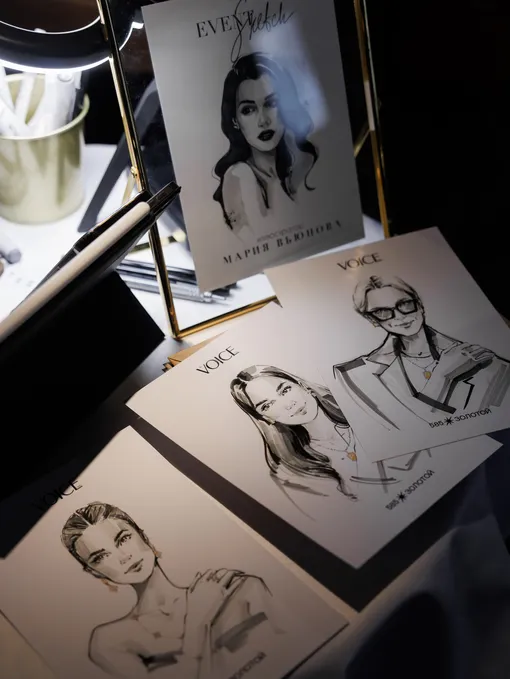 Каждый гость мероприятия получил в подарок брендированной скетч от иллюстратора Марии Вьюновой, вдохновленный коллекциями бренда «585 Золотой» — «Ледяная россыпь» и «Ля флёр».