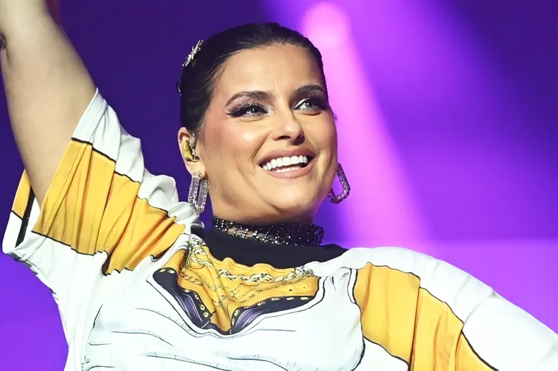Нелли Фуртадо вышла на сцену в платье с изображением стройной девушки, высмеяв свою новую фигуру
