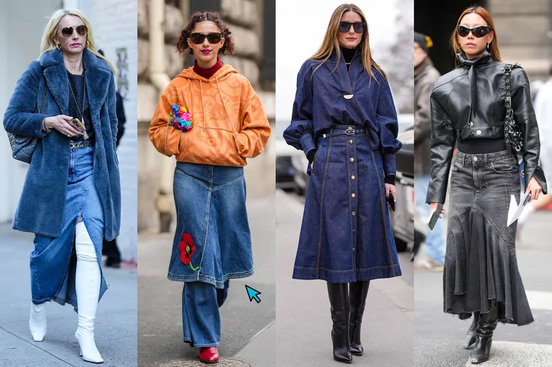 Как осенью и зимой носить модную джинсовую юбку: готовые образы-шпаргалки