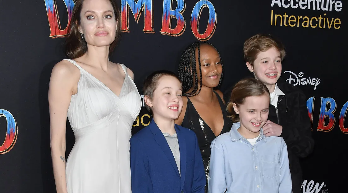 Анджелина Джоли в белом платье появилась с детьми на премьере фильма о слоненке
