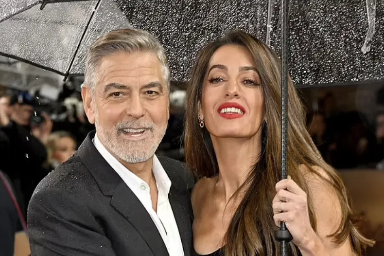 «Влюбленный джентльмен»: Джордж Клуни спас жену от дождя под зонтом на премьере в Лондоне