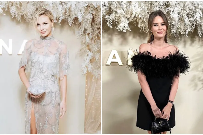 Полина Гагарина в сверкающем платье с разрезом и Алена Гаврилова в черном мини с перьями появились на показе в Москве