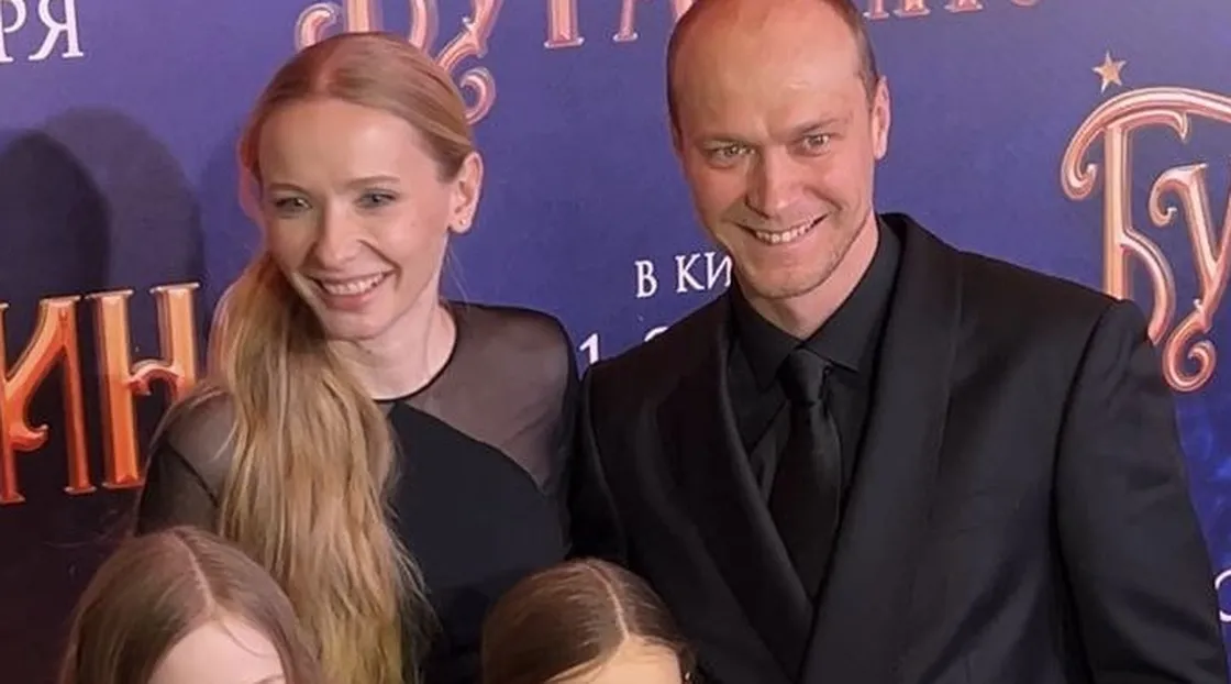 Отрастивший волосы Юра Борисов вместе с женой и дочерьми появился на премьере фильма «Буратино»