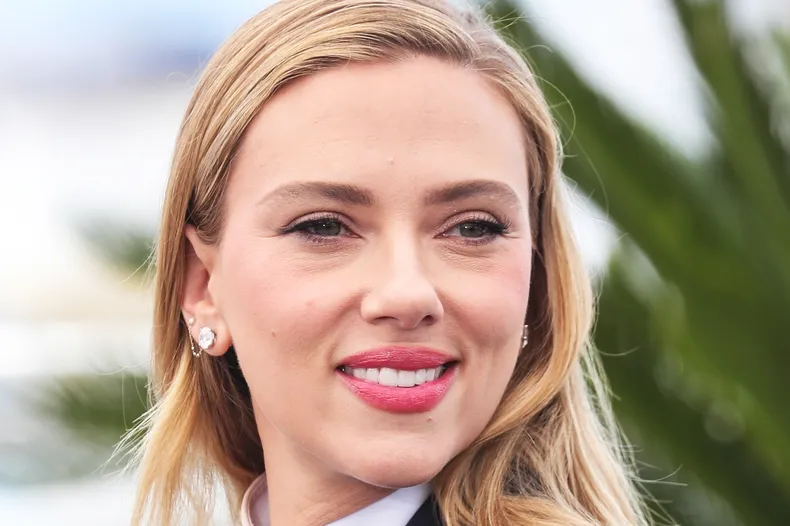 Скарлетт Йоханссон в бледно-голубой шелковой блузке и джинсах появилась на премьере
