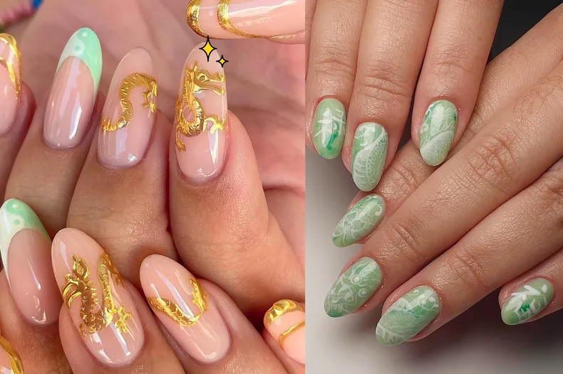 Новогодний маникюр в стиле Зеленого Дракона: 10 нейл-идей с животным-талисманом наступающего года