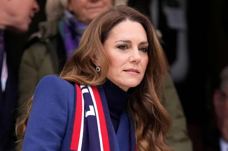 Кейт Миддлтон в элегантном ярко-синем пальто и без мужа появилась на стадионе