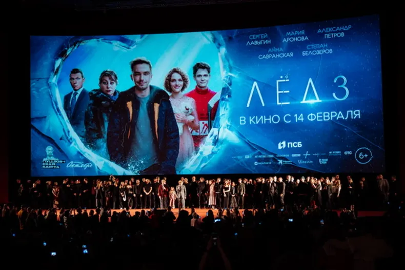 Александр Петров, Федор Бондарчук, Дарья и Антон Златопольские на премьере фильма «Лед 3»