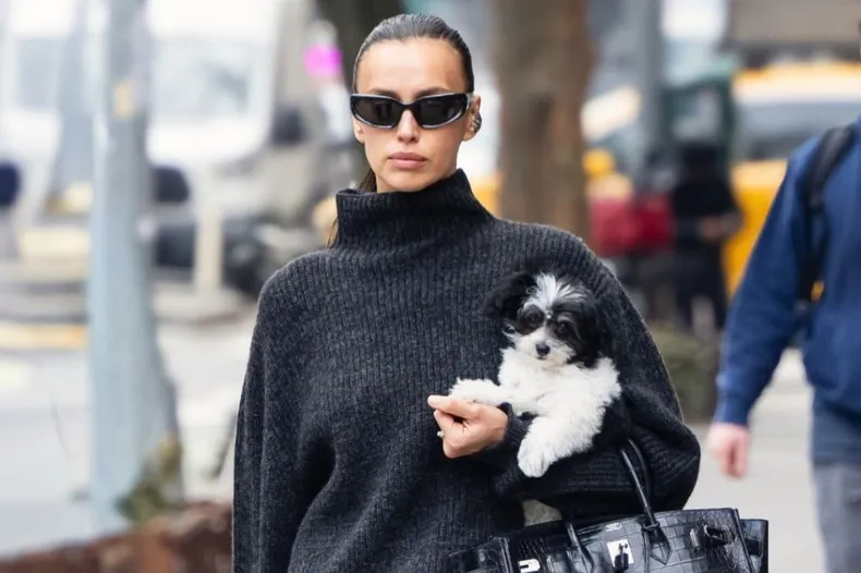 Ирину Шейк с новым питомцем на руках подловили папарацци в Нью-Йорке