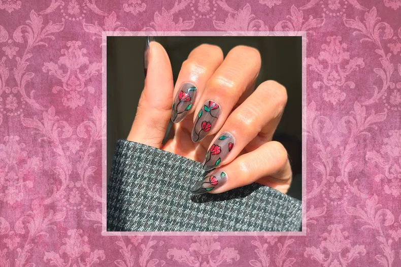 Ногти-витраж: 4 модные идеи готического маникюра с цветами
