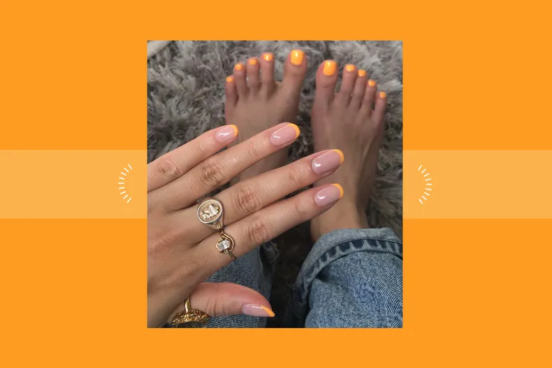Монотон и сатин: идеальный прием для сочетания цвета маникюра и педикюра