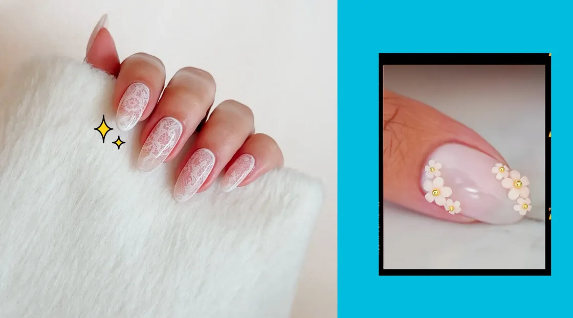 Кружево, цветы и бриллианты: 5 самых женственных идей маникюра на февраль в молочном цвете