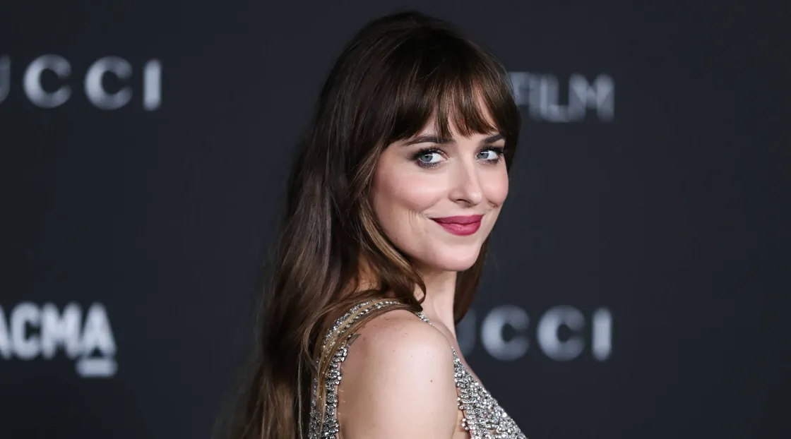 Дакота Джонсон показывает, как стильно сочетать белый блейзер с мини и мюлями
