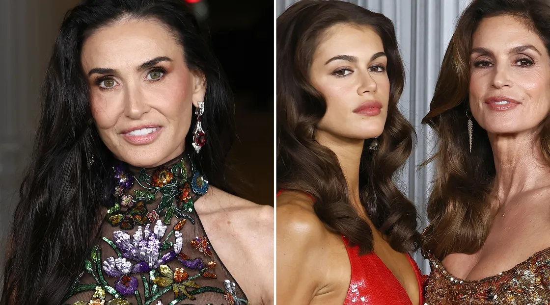 Деми Мур, Синди Кроуфорд и Кайя Гербер в элегантных платьях с открытыми плечами появились на гала-вечере