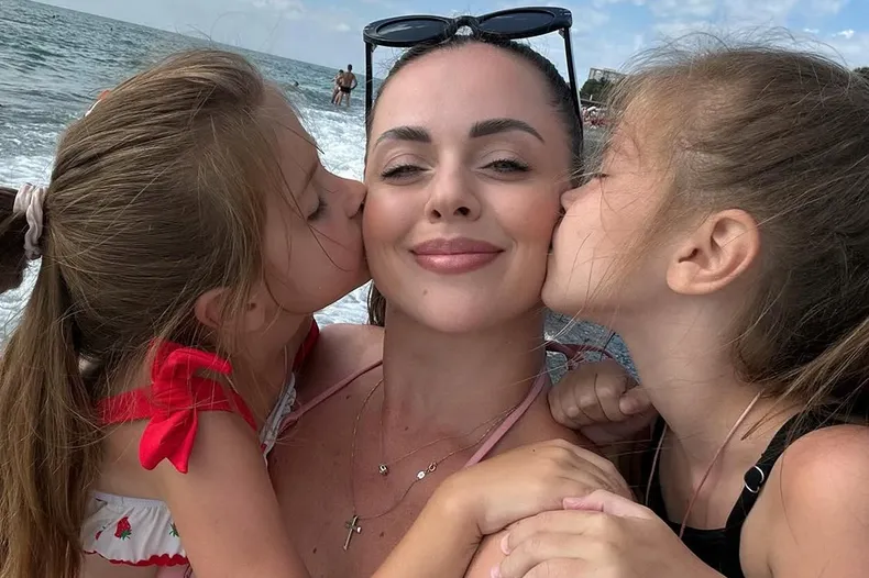 Ольга Рапунцель снялась в розовом бикини с дочерьми на пляже в Сочи