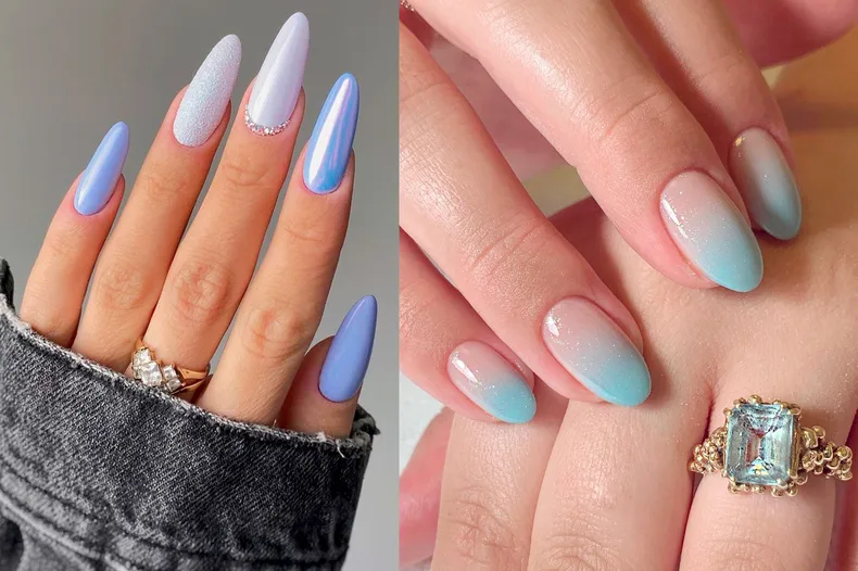 5 свежих идей для маникюра в голубых тонах: с френчем, омбре и стемпингом