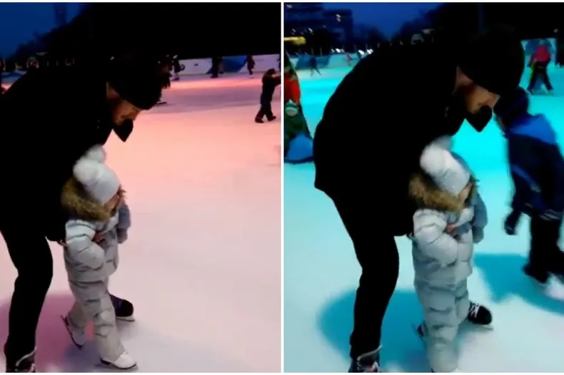 Муж Пелагеи показал первые шаги двухлетней дочери на коньках