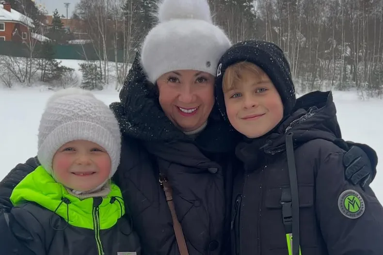 «Разве можно взрослого человека заставить нырять в снег?»: мать Сергея Лазарева показала редкое фото с внуками на отдыхе