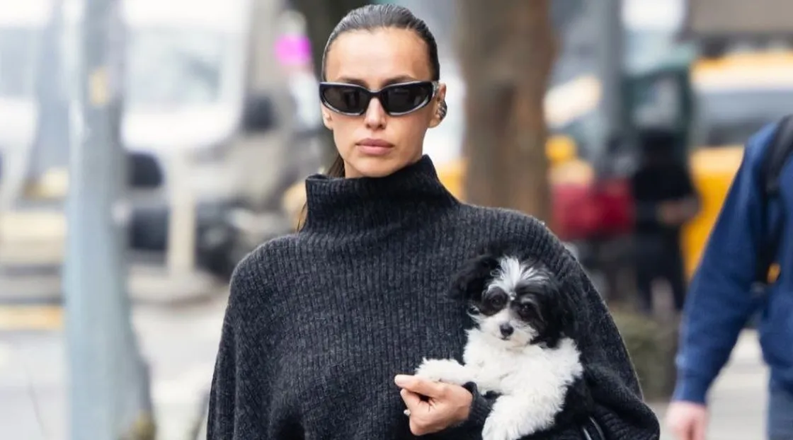 Ирину Шейк с новым питомцем на руках подловили папарацци в Нью-Йорке
