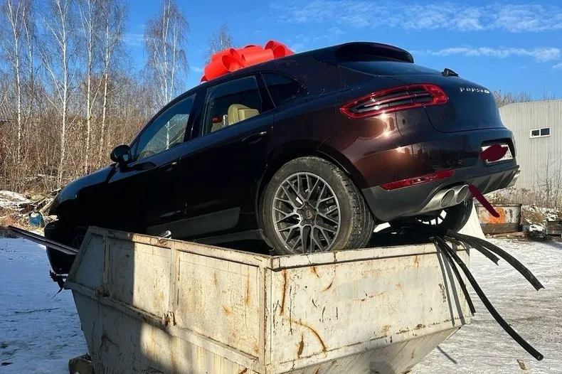Мужчина выбросил в мусорный контейнер Porshe с красным бантом, который не понравился жене
