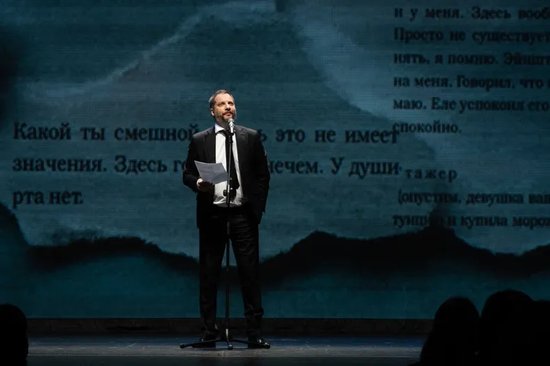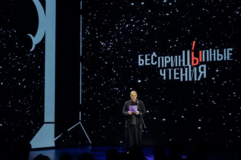 Константин Хабенский, Александр Цыпкин и Ольга Литвинова на литературном проекте