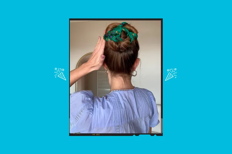 Пышный пучок с платком: как просто и небанально собрать волосы за 5 минут до выхода из дома