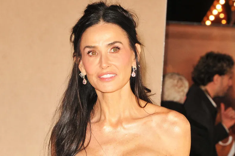 Деми Мур в полупрозрачном платье с открытыми плечами появилась на премьере в Лондоне