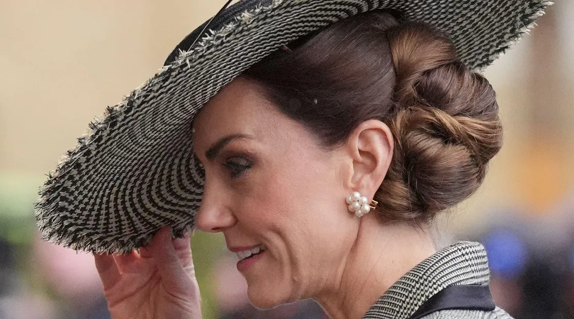 Кейт Миддлтон в шляпке, особенных серьгах и приталенном сером пальто вместе с мужем появилась в соборе