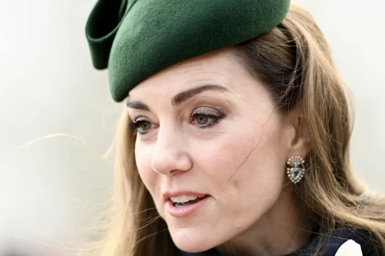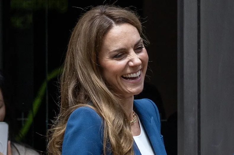 Кейт Миддлтон в синем брючном костюме и с массивной золотой цепью появилась в новом музее