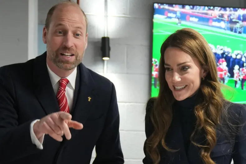 Кейт Миддлтон в пальто с золотыми пуговицами и серьгах за 100 долларов появилась с мужем на стадионе