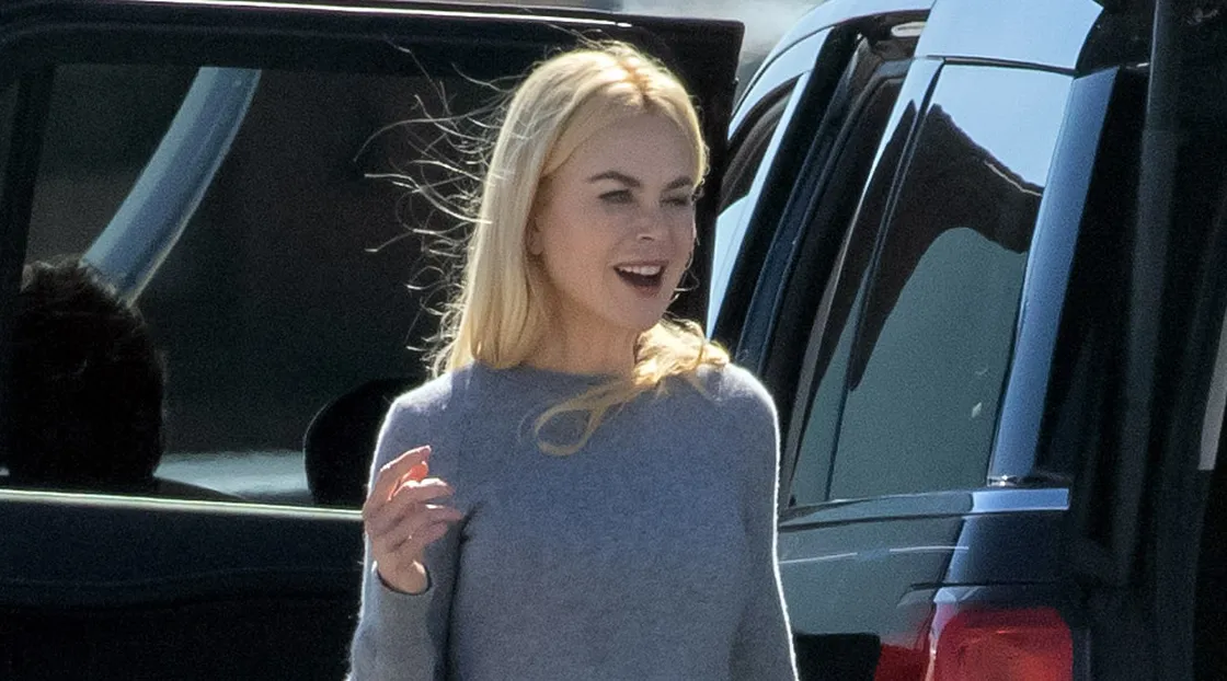 Радостную Николь Кидман после ее выхода в «платье мести» подловили папарацци возле самолета