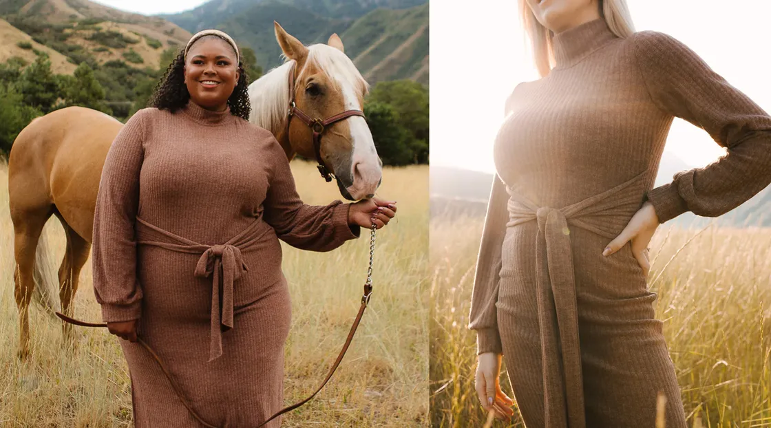 Коварный трикотаж: как одно и то же теплое платье смотрится на фигурах разных размеров
