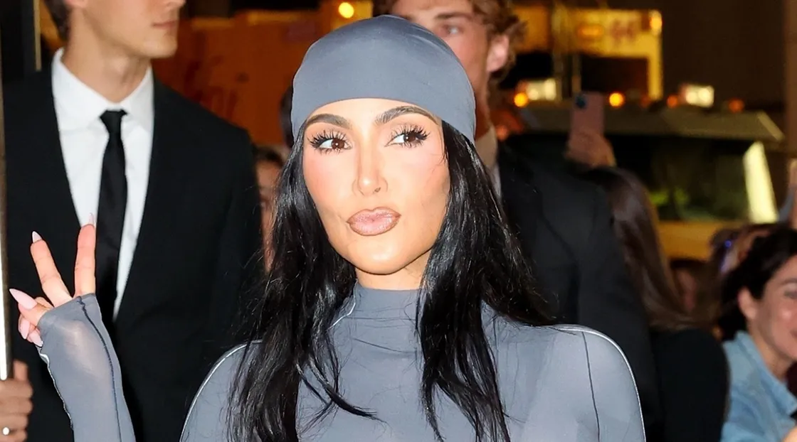 Ким Кардашьян появилась на открытии магазина в прозрачном комбинезоне, засветив бюстгальтер и трусики