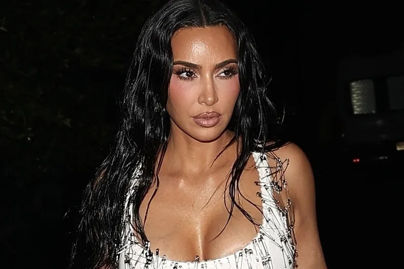Ким Кардашьян в облегающем платье с сотнями булавок появилась на вечеринке
