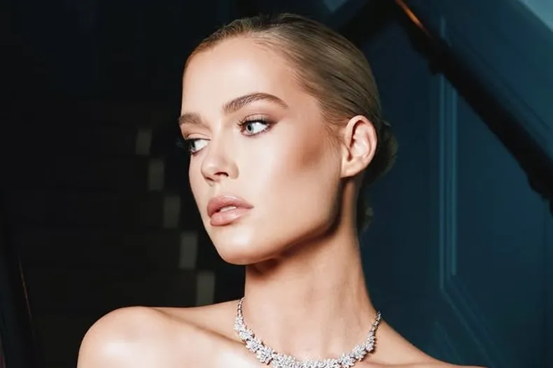 Похожая на принцессу Диану ее племянница Амелия Спенсер в свадебном платье с глубоким декольте снялась у бассейна