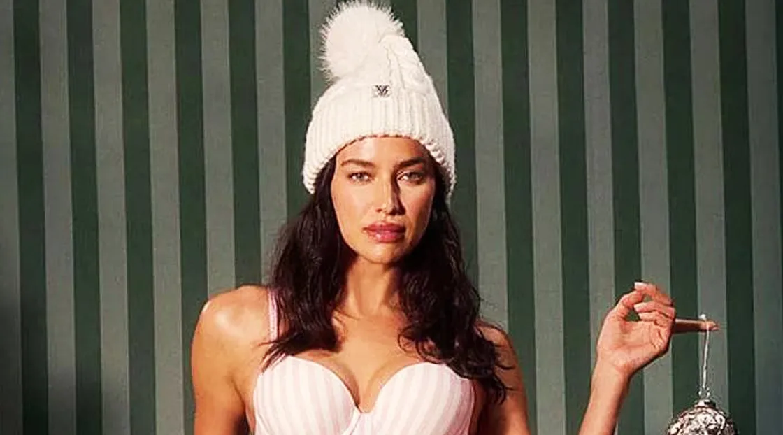 Ирина Шейк в нижнем белье снялась на лестнице у праздничной ёлки