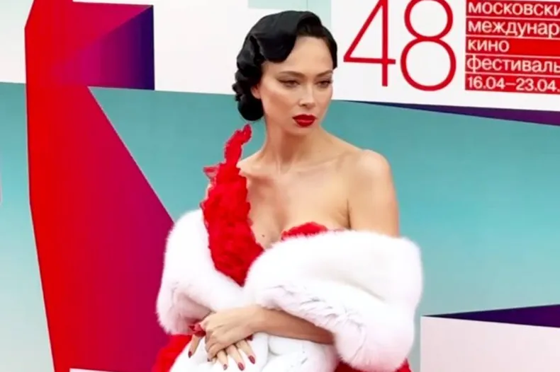 Похудевшая Настасья Самбурская в красном платье без бретелей и белом боа появилась на открытии ММКФ