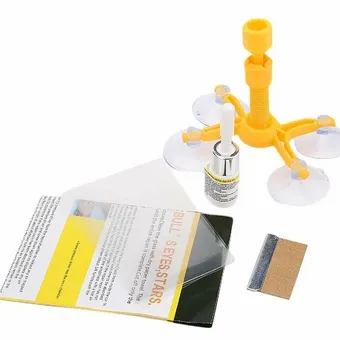 Набор для ремонта трещин и сколов на лобовом стекле можно купить на любом маркетплейсе. Стоимость начинается от 300 рублей, в состав может входить только полимер (вариант похуже) или все необходимое, включая фонарик (вариант получше). Я рекомендую купить сразу два набора – на случай, если что-то пойдет не так. Лучше, наверное, брать разные комплекты от разных производителей, особенно если в обоих случаях речь идет о ноумеймах.